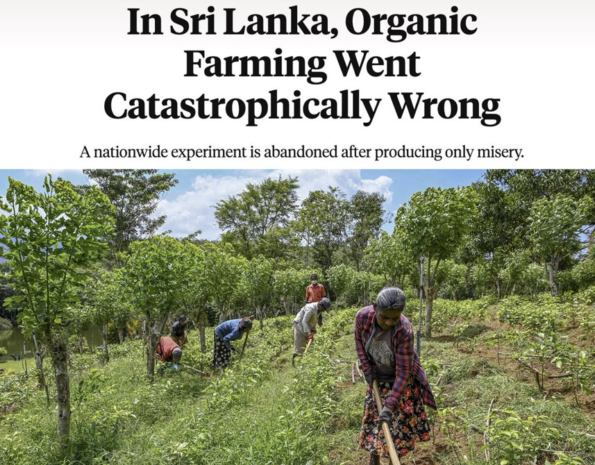 Srí Lanka minulý rok uskutočnila na svojich občanoch zlý experiment. Pod vplyvom aktivistov za organické potraviny a proti GMO vláda zakázala import syntetických pesticídov a vynútila prechod krajiny na čisto organické poľnohospodárstvo, pričom drvivá väčšina farmárov prišla o prístup k nevyhnutným nástrojom na pestovanie plodín, od ktorých krajina závisí.